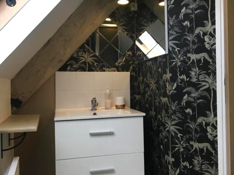「部屋は屋根が傾斜していて少し小さいですが、バスルームも同様です。」