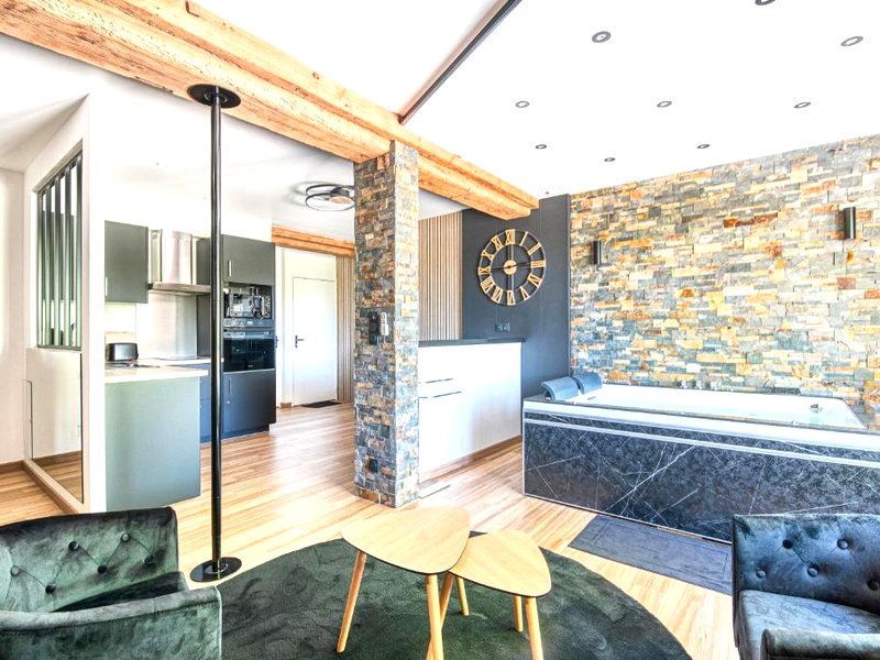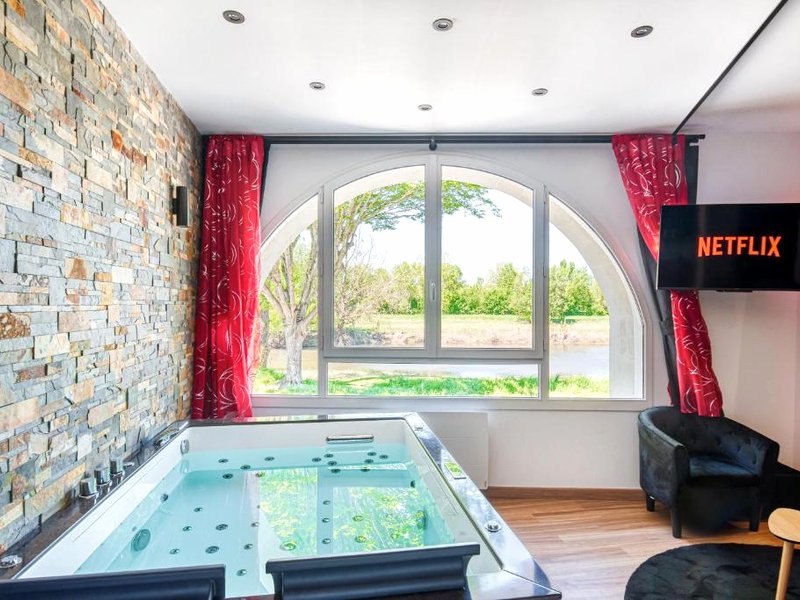 Rochefort-sur-Loireに位置する「Love room au bord de l’eau. L’instant coquin」は、テラ・ボタニカから26kmとアクセスも良好な宿泊施設です。川の景色を望むロマンチックな空間で、特にカップルにおすすめのプライベートな時間を過ごすことができます。館内全域で無料Wi-Fiが利用でき、快適な滞在をサポートします。