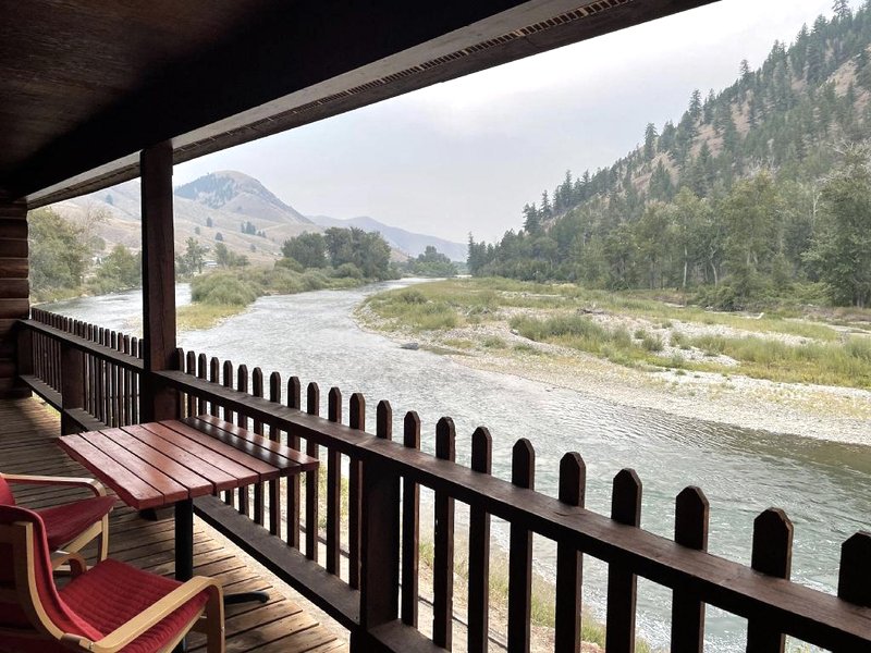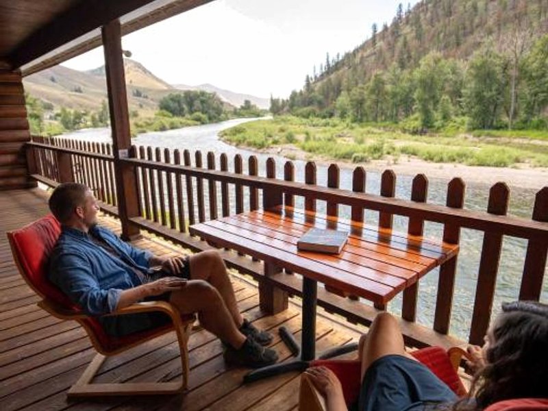 「サーモン川沿いのログハウス風の建物です。携帯電話の電波は届きませんが、強力なWi-Fiがあります。バルコニーでは、コーヒーを飲みながらリラックスして景色を楽しめます。部屋はとても清潔で、ベッドも快適で…」
